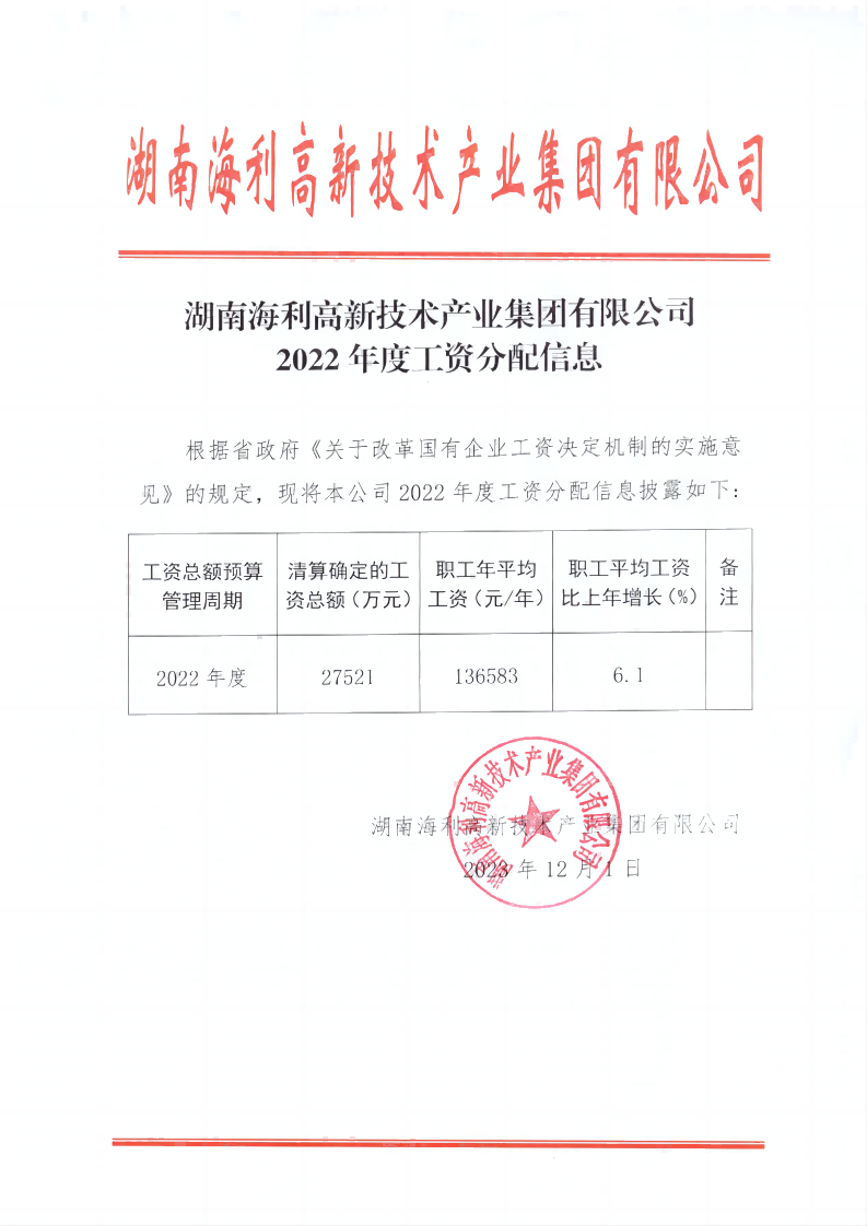 湖南28圈高新技术产业集团有限公司2022年度工资分配信息